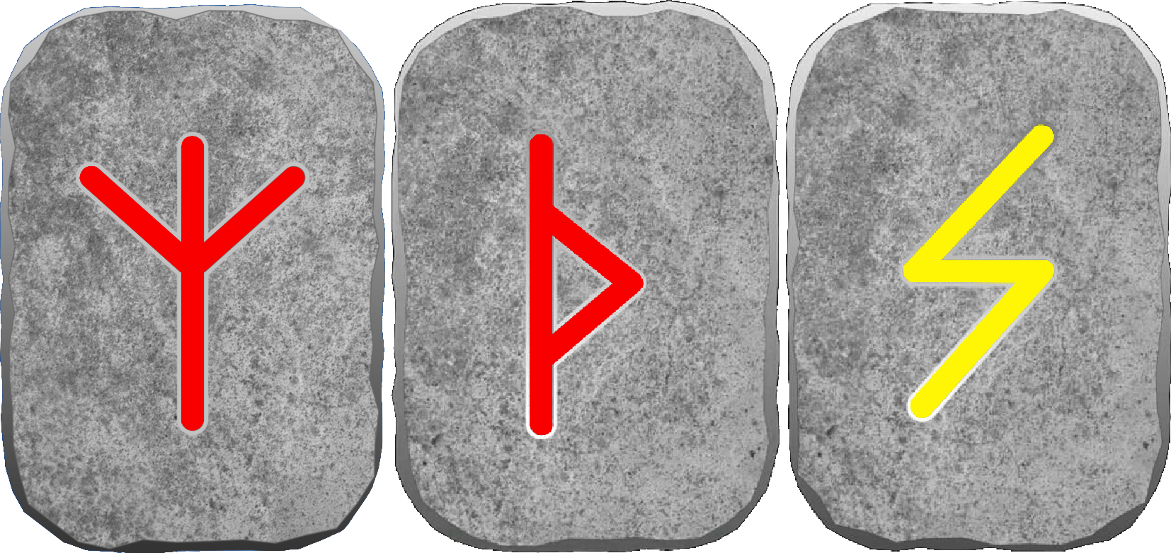 Figure 1. As (rune no. 4), Beorc (rune no. 18), Eoh (rune no. 13).