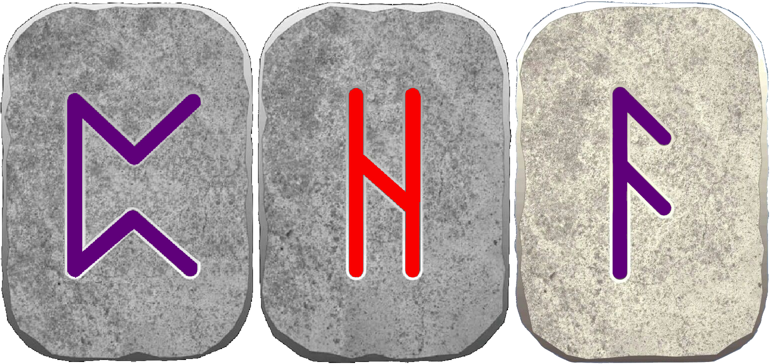 Figure 5. Elhaz (rune no. 15), Thorn (rune no. 3), Sigel (rune no. 16).