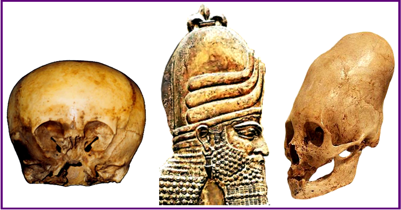 As was indicated in Aliens 1, the Starchild skull (shown in Figure 3) is most likely of a Grey alien (not closely related to humans) and there is strong evidence to suggest that the Paracas skull is of a being with a high percentage of Anunnaki DNA, i.e. the being is a so-called Nephilim (Anunnaki x human hybrid, closely related to humans in that we are descended from Nephilim). It is notable that Anunnaki are depicted with very high hats, e.g. in Figure 2 and at the top of the Aliens 1 post. This would be consistent with the Anunnaki having very high egg-shaped craniums, similar to the Paracas skulls (the Paracas skulls are at least 25% larger and up to 60% heavier than normal human skulls, as is indicated in Aliens 1).