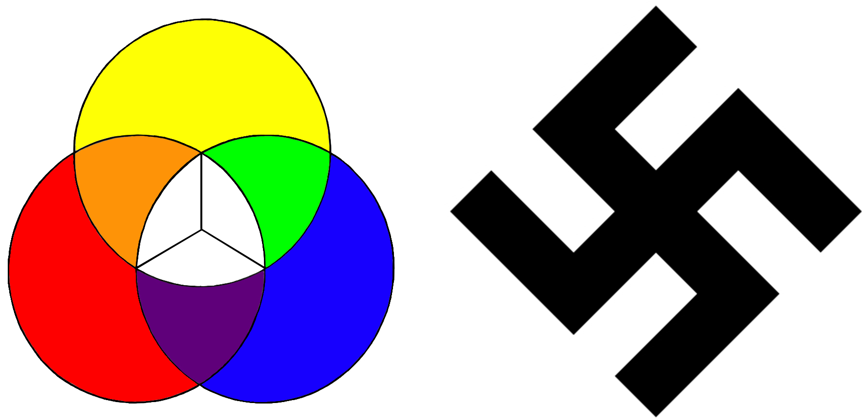The symbol on the left is a representation of ET Aliens’ Reuleaux pyramid in the Candor Chasma region of Mars. The meaning of this symbol is explained in the post Are you ready for Greatness? An original image of this Reuleaux pyramid, and its meaning in universal symbolism, is presented in the post From ET to Enlightened Time. The meaning of the Swastika is also explained in that post. For information about the greatest example in modern history of life in the spirit of the Swastika, see the posts on Adolf Hitler.