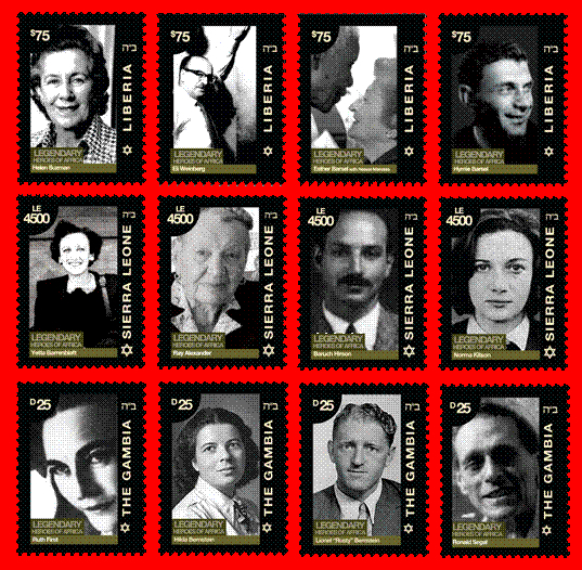 Postage from Hell. Stamps issued to honour some of the jews who worked to destroy South Africa. From top, L to R: Helen Suzman, Eli Weinberg, Esther Barsel, Hymie Barsel, Yetta Barenblatt, Ray Alexander Simons, Baruch Hirson, Norma Kitson, Ruth First, Hilda Bernstein, Lionel “Rusty” Bernstein, Ronald Segal. Source: The article cited below.