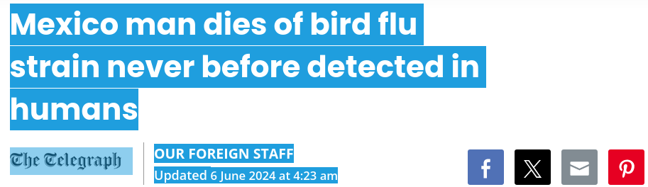 “A man’s death in Mexico was caused by a strain of bird flu called H5N2 that has never before been found in a human, the World Health Organisation (WHO) announced on Wednesday evening.