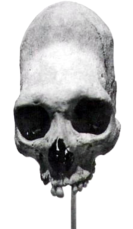 This skull was excavated ca. 1932 in Lamar County, Texas, USA.1 It has a brain capacity of about 2000 cc, which is a significantly larger brain capacity than occurs in normal humans. The skull does not show any evidence of artificial cranial deformation.3 Further, the length of the interparietal bone (os interparietale or Inca bone or os inca var.), a dermal bone situated between the parietal and supraoccipital, and which gives this skull its length, is genetically determined.4