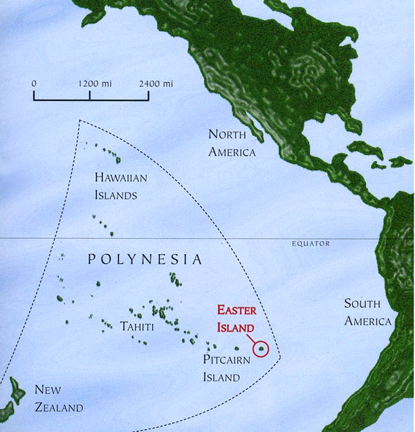 Easter Island in relation to South America