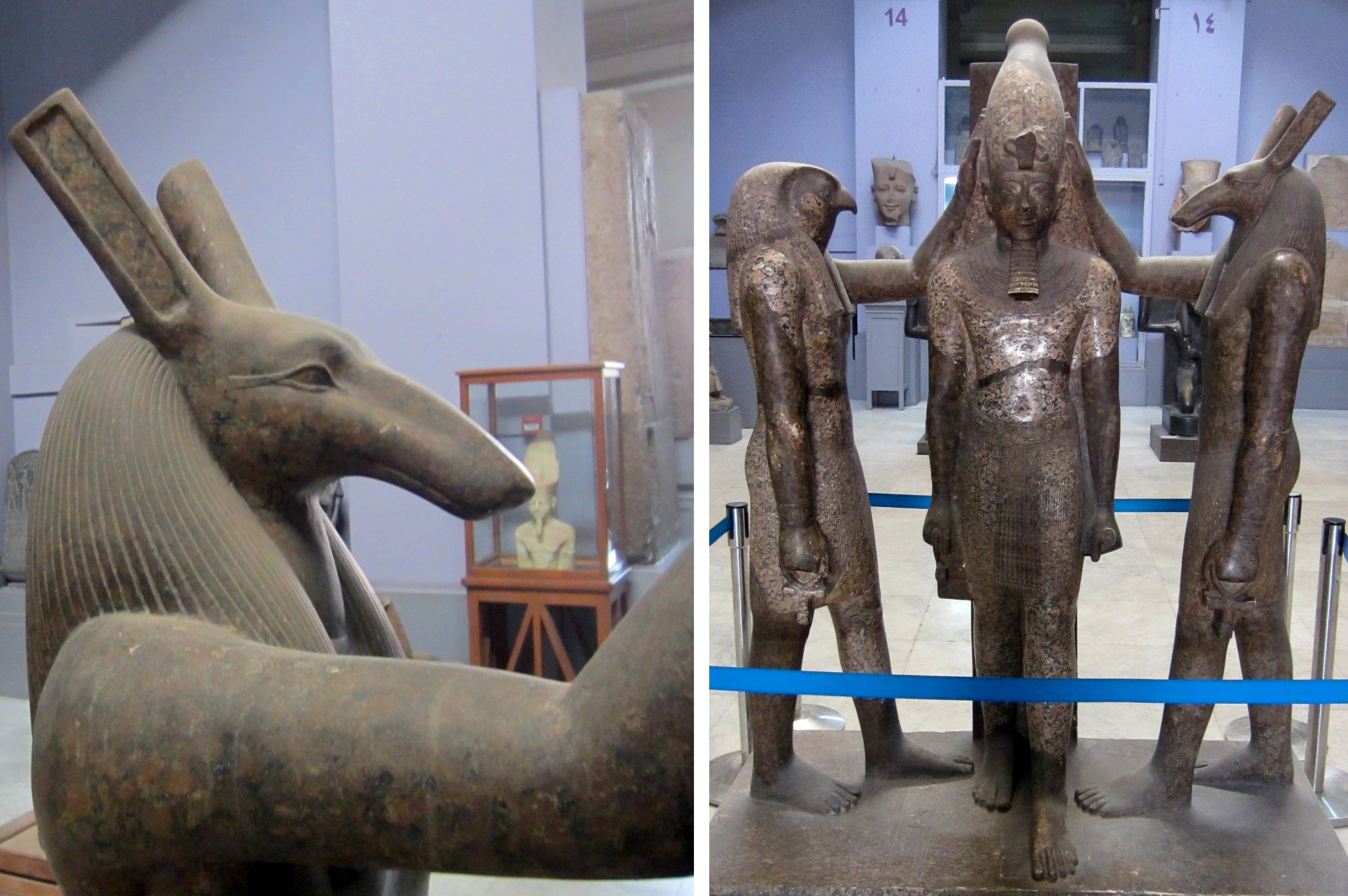 Notable symbols in this sculpture include Set’s long geometric ears and the Ankh.